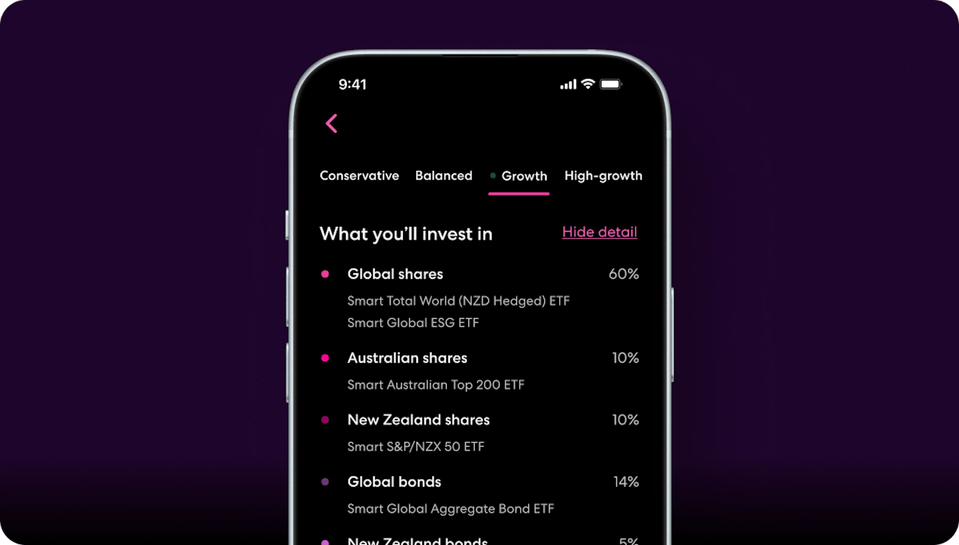 The right portfolio for you depends on your timeframe, your comfort with ups and downs, and your financial situation. When you go through our advice flow, we ask about these factors to match you with a suitable portfolio—whether that's conservative, balanced, growth, or high-growth.